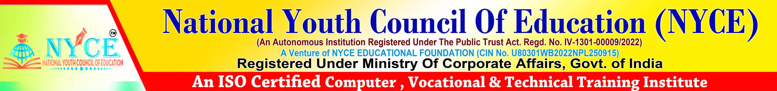 “National Youth Council of Education (NYCE)” is a top Computer, Vocational & Technical Educational training Institute in all over India. “National Youth Council Of Education (NYCE)” is an ISO 9001:2015 Certified Organization, An Autonomous Institute Registered Under The Indian Trust Act, 1882 (Reg. No-IV-1301-00009/2022), Govt. of India, and also Registered Department of labour, Govt. of N.C.T ,New Delhi & Registered Under Trade Mark Registry Act,1999, Govt. of India, Registered Under MHRD (CR Act), Govt. of India. National Youth Council of Education is registered under Ministry of Micro, Small and Medium Enterprises (MSME), Govt. of India. NYCE Educational Foundation Established Under Ministry of Corporate Affairs, Govt. of India.